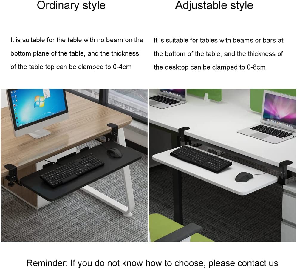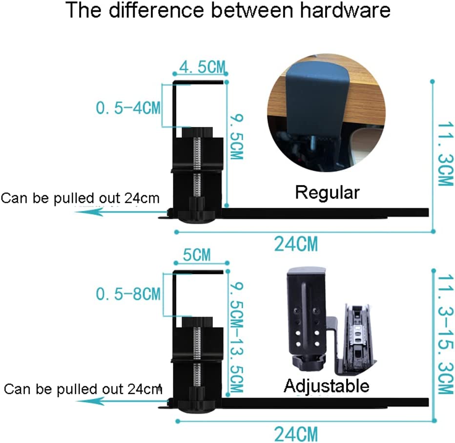 ★The under-desk keyboard stand has two strong steel clips, which can be firmly fixed on the edge of the desktop, supporting the keyboard tray well while avoiding damage to the desktop.